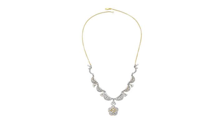 Tüm zarafet kadınlara kendilerini “özel bir hazine” gibi hissettirmek için tasarlanan gerdanlık birinci sınıf pırlanta ve beyaz altının kombini ile göz alıcı bir güzellik taşıyor.
